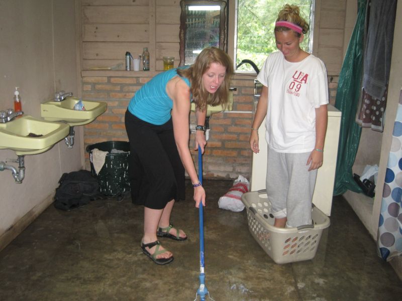 The morning after our fiesta, two people from team rooted 19:30 (Christy and Alex) were doing their laundry in the washing machine. The washer has to have the water turned off manually or it will overflow. Unfortunately, the two women were not closely watching the washer so it overflowed onto the bathroom floor. They cleaned it up when they noticed the problem but it took some time.