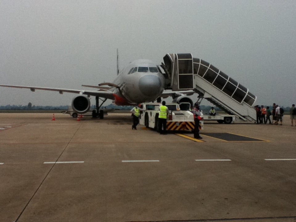 2:50-4pm- We believe we are on a non-stop flight to Phnom Penh from Singapore. We find out about 10 minutes before we land that the flight is not non-stop after all. We will need to stop at another airport first before flying to Phnom Penh. I sleep on the first flight for close to an hour.