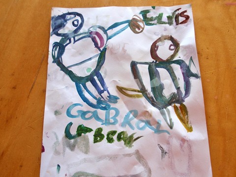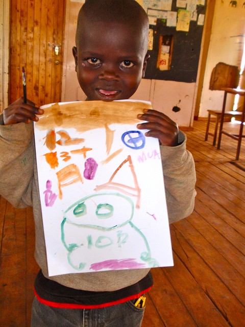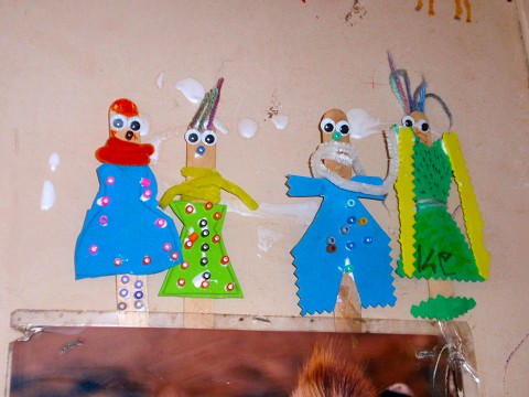 In the morning, we separate the kids into 4 different classes based on their grade level: music, bible, arts/crafts, and games. This week I am helping with crafts…here's some of their work…