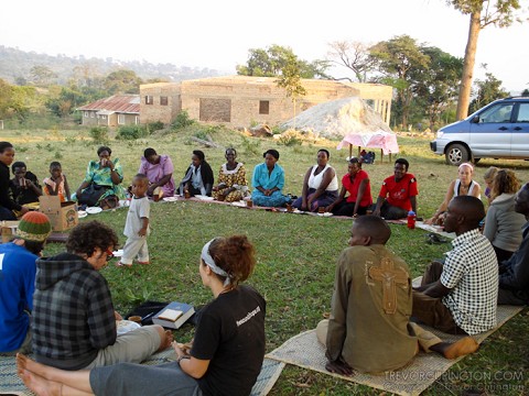 On the left is a big group of orphans who came to see us. On the right is a home group we go to once a week.