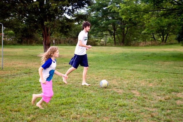After she gave me the candy we played another game of soccer with her brothers then we all went swimming. After the swim, while I was sitting in the kitchen with Trevor and Jessi, Angie came sneaking in to scare me. After she did, she stayed in the kitchen with us for a while and even laughed at my dumb jokes.