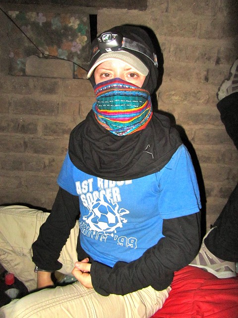 So, our alarm sounded at midnight and we got all geared up…pants,