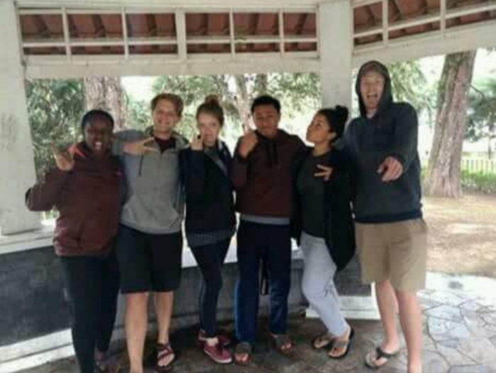 While playing, people were curiously watching and without hesitation, approached us with questions about the game. It wasn’t long before we made a new friend, Farees, of the muslim faith. We met up again the next day and he came prepared with a game of his own. He had us sit in front if him and place our hands out with our palms facing up. He explained that he was going to tell us about our character just before he applied pressure with his index finger to each of our palms. One by one he spoke about each of us..Grace, myself, Christazia, Wade and Forrest. While what he stated was not entirely true, I found it humorous that when he spoke about Grace and I he found it necessary to state our inability to cook…. I speak for Grace in stating WE DO NOT RECEIVE THAT! (Or any of it for that matter) LOL