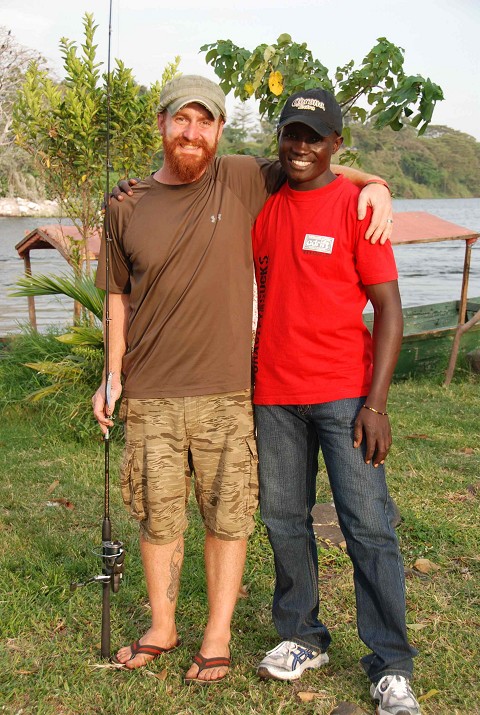 I met Samuel as we boarded the boat.  I was immediately impacted by his evident joy for life and his desire to get to know us.  He also told me that we would be driving slowly up the shore to look for birds and snakes and that I could fish as we went, if I desired (of course I desired!!!).  Near the source of the Nile I caught a Nile Perch (the fish pictured).  Catching a Nile Perch in the Nile was the reason I brought a fishing pole with me on the trip.  Feeling pretty good about my accomplishment and feeling very grateful to Samuel for letting me fish from his boat (fishing trips on the Nile can be very expensive) I got out of the boat at the source of the Nile to look around.  As I disembarked Samuel asked me if I liked to fish.  I responded with a yes.  He then told me he would like to tell me how I could be a fisher of men.    I smiled and told him I already knew Jesus, but thanked him for his boldness in sharing the Gospel with someone he just met.