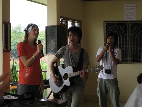 Worship with the youth. Our translators Karis, Natt and Noom.