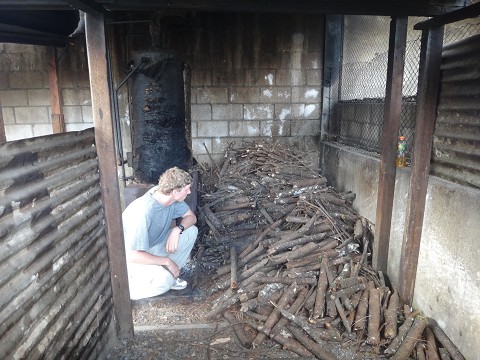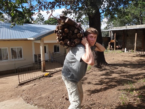 Alex (18 years old, one of the boys that lives here) hands me a peice of rope and we start to head down the hill into the forest…  700 feet later, we reach the bottom of the hill where their are piles of chopped up limbs ready to be carried up.  He makes a bundle for each of us using the rope.  Their about as big as you can wrap your arms around.  Then we start walking back up the hill with the wood slung around on our back (slower than when we came down of course).  We get to the top when the bundle seems twice as heavy as when we started.  But all in all it wasn't that bad.  Until he says we need more.  It turns out to be a lot more.