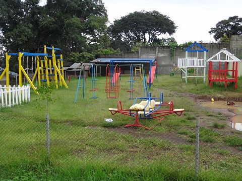 Just a quick update on what's going on here!  The playground here had a huge hole in it from erosion and rain water.  So, we just spent the morning shoveling dirt from one pile to the next to fill in a hole in the playground area (you can see it off to the right in the picture).  And Jake was doing the "classic" cutting the grass with a machette.  That's right a MACHETTE!  It was really hard work but we got the rest of the day off for it.
