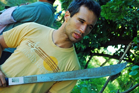 the sun when I saw him climbing a tree armed with a machete. His repeated swinging of the Nicaraguan