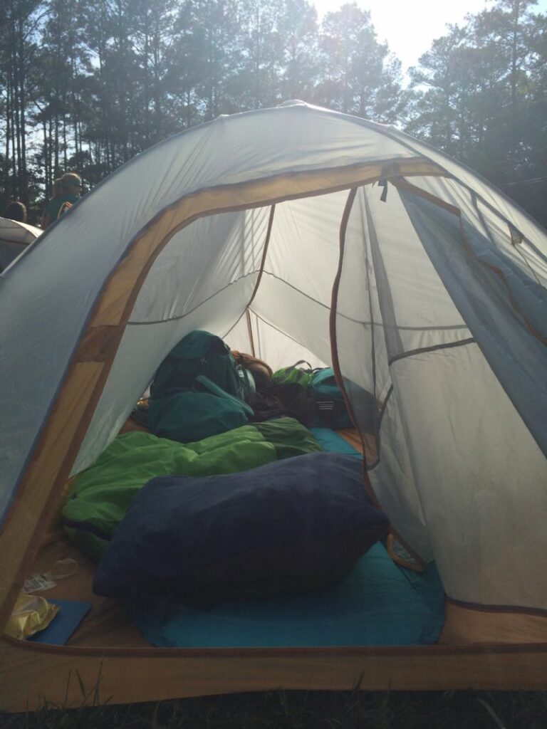 The excitement of my first night in a tent!