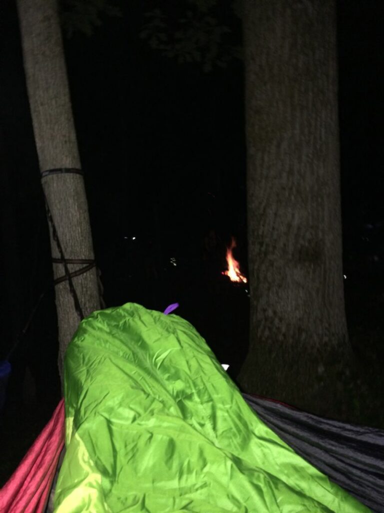 Overnight hammock sleeping with camp fire in distance! My favorite night!