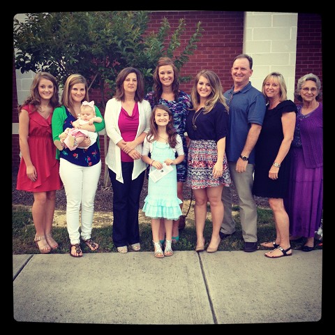 (Sabrina, Linden+Lila, Mom, Cecily, Meredith, Me, Dad, Aunt Mel, Grandma)