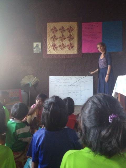^”Teacher Whitney” teaching English in the classroom. I taught them about the calendar: days, weeks, months. “Today is Saturday November 22. Yesterday was Friday November 21. Tomorrow is Sunday November 23.” π And learning the names of the months!